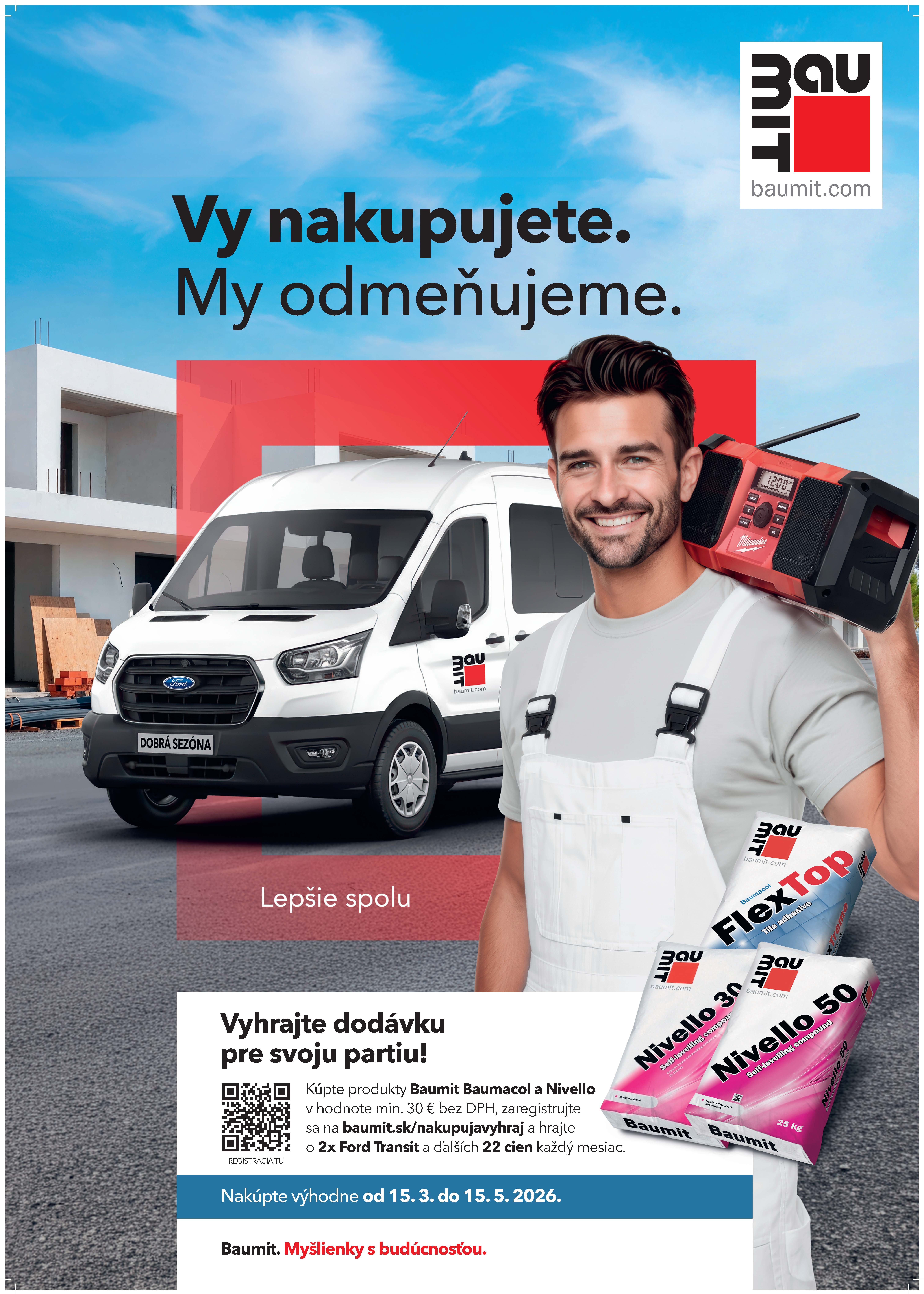 Nakupujte Baumit, registrujte doklady a skúste svoje šťastie. Možno práve vy odídete zo stavby v novej dodávke.